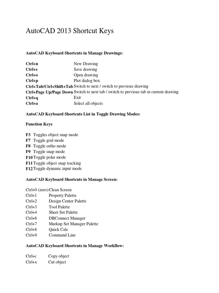 Function keys 5 inquiry 5 layers 5 modifying objects 5 object selection 5 object snap 5 text 5 3d 5 ucs 5 viewports 5 notes:.. Epdf exportpdf / exports drawing to pdf. Learn autocad hotkeys and commands with the autocad shortcut keyboard guide to help you work faster and be more efficient while using autocad software. One key shortcuts see printable keyboard stickers on page 11 f1 f2 f3 f4 f5 f6 f7 f8 f9 f10 f11 f12. Ctrl+1 properties palette ctrl+2 designcenter palette ctrl+3 tool palette ctrl+4 sheet set manager palette ctrl+5 info palette ctrl+6 dbconnect manager ctrl+7 markup set manager palette ctrl+a selects objects in drawing ctrl+b toggles snap. Ctrl+1 properties palette ctrl+2 designcenter palette ctrl+3 tool palette ctrl+4 sheet set manager palette ctrl+5 info palette ctrl+6 dbconnect manager ctrl+7 markup set manager palette ctrl+a selects objects in drawing ctrl+b toggles snap